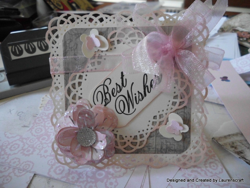 Just had to make this card, beautiful Spellbinders Butterfly and my roses made with Spellbinders Rosemaker Creations. This is a stunning card and at the moment this very full, very dimensional card is my style. Hmm wonder what my style will be in another week or so???